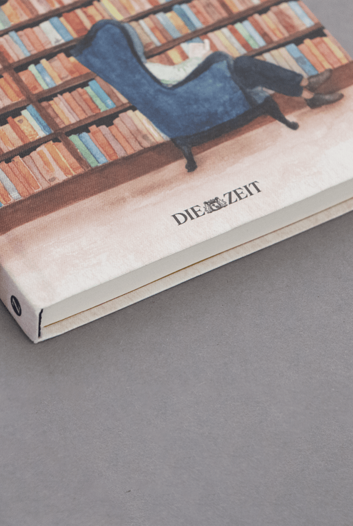 Neben Illustration und Covergestaltung wurde ein raffinierter Faltschuber aus Leinen entworfen, der mit einer Goldprägung versehen ist.